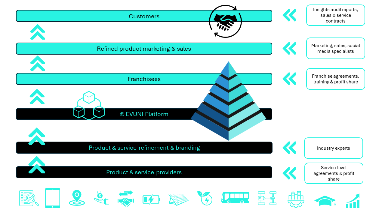EVUNI offers a comprehensive range of electromobility solutions through modular platforms tailored to specific regional and local market conditions. The electromobility sector is driven by advantages such as energy efficiency, lower costs for energy and maintenance compared to Internal Combustion Engines, and the worldwide shift towards a net zero economy, bolstered by incentives, grants, funding, and carbon taxes.